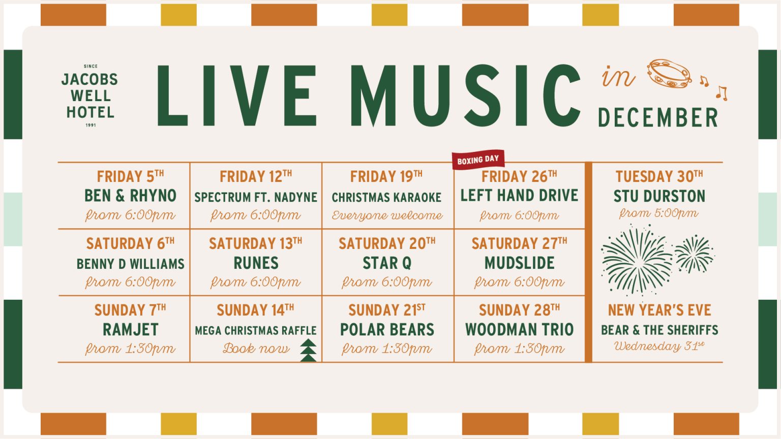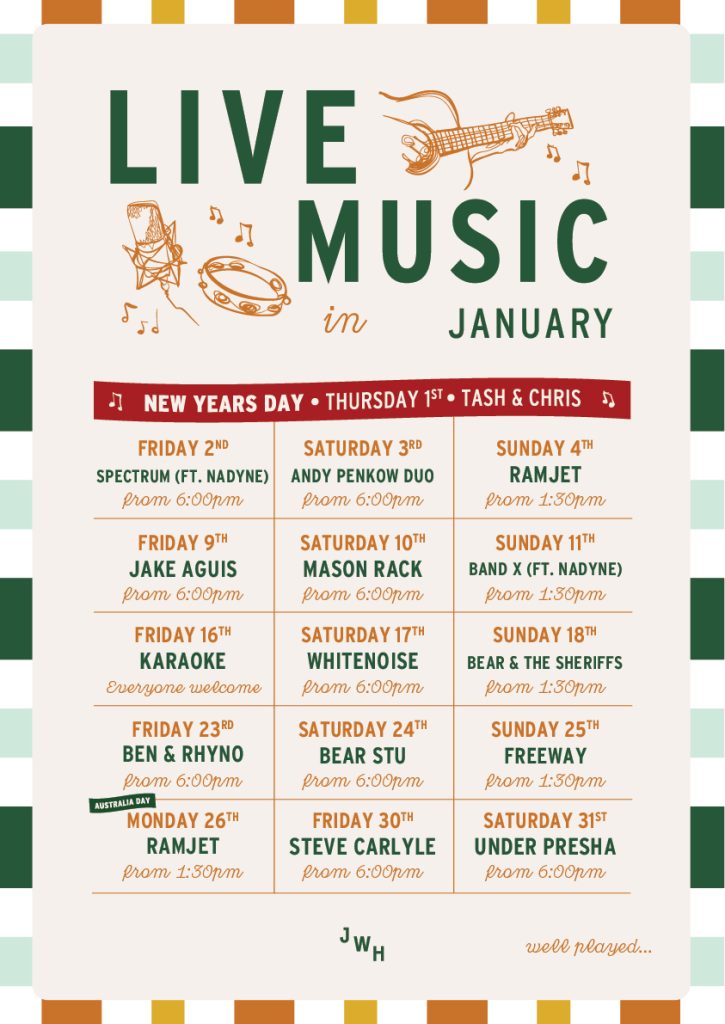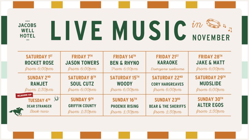 We’ve got all the entertainment you need in one place! Enjoy an epic season of tunes here at Jacobs Well and groove to everything from country to rock with a beer in one hand and ready to tuck in to a delicious pub feed with the other.